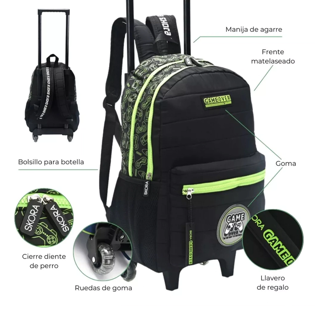 La Mochila Con Carro Skora Lets Play Game Over 35407 es la combinación perfecta de estilo juvenil y practicidad. ¡Lleva tus cosas con confianza y demuestra tu personalidad en cada paso del camino!